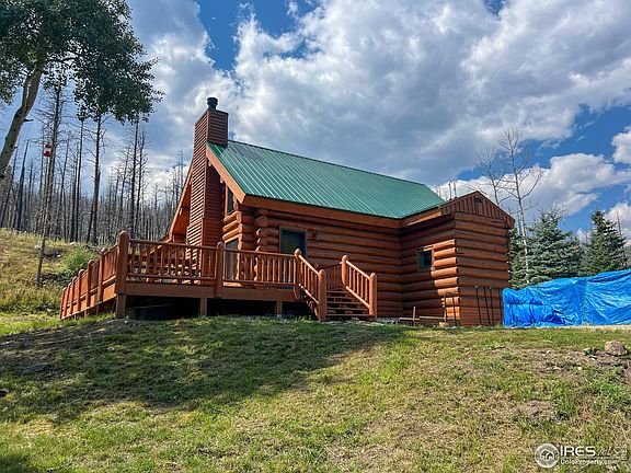 Buckhorn Creek Home is situated on 40 +/- acres in Bellvue, Colorado. This fantastic cabin overlooks a beautiful meadow and scenic Buckhorn Creek. This top notch build is outfitted to be a full time residence or a weekend getaway. Whether you are looking for a weekend getaway or a mountain home outside of town, this property caters to the needs of all. This 40 +/- acre property has a gentle sloping topography and borders Roosevelt National Forest on two sides, giving it a big, open feel with tons of room to roam. It's peaceful and quiet, yet just an hour from Fort Collins. Buckhorn Road runs through the land for easy reliable year round access, with Buckhorn Creek flowing alongside-adding to the charm. While a fair portion of the property was affected by the 2020 Cameron Peak Fire, the main meadow and much of the north side remain untouched. The regrowth throughout the acreage is encouraging and it will continue to recover with time and other land management practices like logging and mulching. Built in 2016, this 2,278 SF cabin blends mountain charm with modern comfort. With 1,234 SF above grade and 1,044 SF below, the open floor plan features tall ceilings, abundant windows, and a stone wood-burning fireplace. The spacious primary suite includes a beautiful view, oversized shower, and double sinks. The basement offers a bedroom, full bath, office, and tall ceilings with a large family room. Both east and west-facing porches overlook the meadow and creek viewing the meadow and listening to the creek. The cabin is powered by solar with a backup generator, a well, propane, a furnace, and an on-demand hot water heater. A slab is in place for a potential attached two-car garage. Across from the cabin sits a 960 SF shop which is rare for properties in the area. Built in 2014, the shop has concrete floors, a large lean-to for tractor storage (tractor included), and plenty of space for equipment.