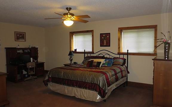 Custom Home, Shop, 40 acres w/ Pond - Take a look at this custom masterpiece home! To truly appreciate this property, one has to look at the details. This 2-story home was built in 2000 and is composed of 3,705 total sq ft, between the 2 levels, and has 5 bedrooms and 2.5 bathrooms. The home has ~8" poured concrete, as the framing, up to the eaves of the home. This home is incredibly strong and well-built! Additionally the home has a concrete shingle roof. The combination of the walls and the roof are built to withstand an F2 tornado. The interior features include living rooms in both the main level and basement, wood burning fireplace that can heat the entire home, a very large master bedroom with attached bathroom and large walk-in closet, heated basement floors, and tons of storage! The home also boasts a central vac system, large utility room, and a 2-car attached garage. To the west of the home sits a large, 42' x 68', shop with concrete floors and electricity. The shop is big enough for all your toys and equipment! As a finishing touch to the shop, it boasts a solar panel system and a wind turbine. These units do need some work to be functional, but all the equipment is already in place. Finally, 40 acres of mostly pasture, with woodland and a creek corridor comes with this property. The land is ready for your cattle and has an accessible pond that can be seen from the back of the home. Call today for this fantastic property!