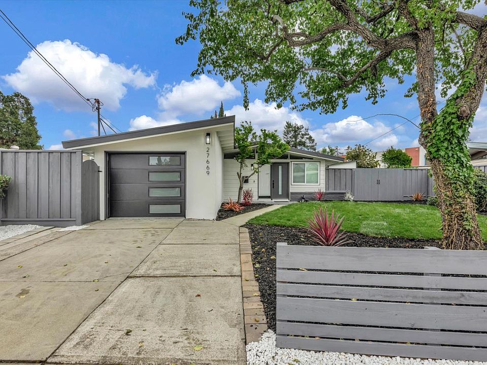 Welcome to 27669 Capri Ave, a revitalized North-facing 3 bedroom, 2 bath home located in the Glen Eden area. Step inside this modern home with an open floor plan, where every detail has been meticulously curated. The kitchen is a chef's dream, boasting a stainless steel farmhouse sink, waterfall edge island, quartz countertops, and a marble backsplash, all complemented by brand new Frigidaire stainless steel appliances. Luxurious upgrades include a Hansgrohe shower system in both the primary and hallway bathrooms, elegantly tiled and featuring modern mirrors and vanity lights. Modern touches extend to the exterior with a modern mailbox, wall lights for the front home and patio area, and a modern frosted glass garage door.