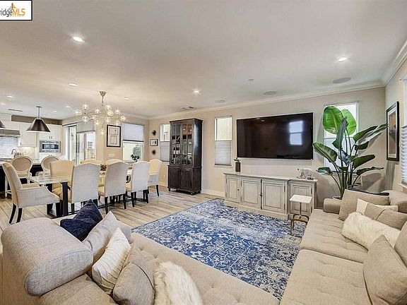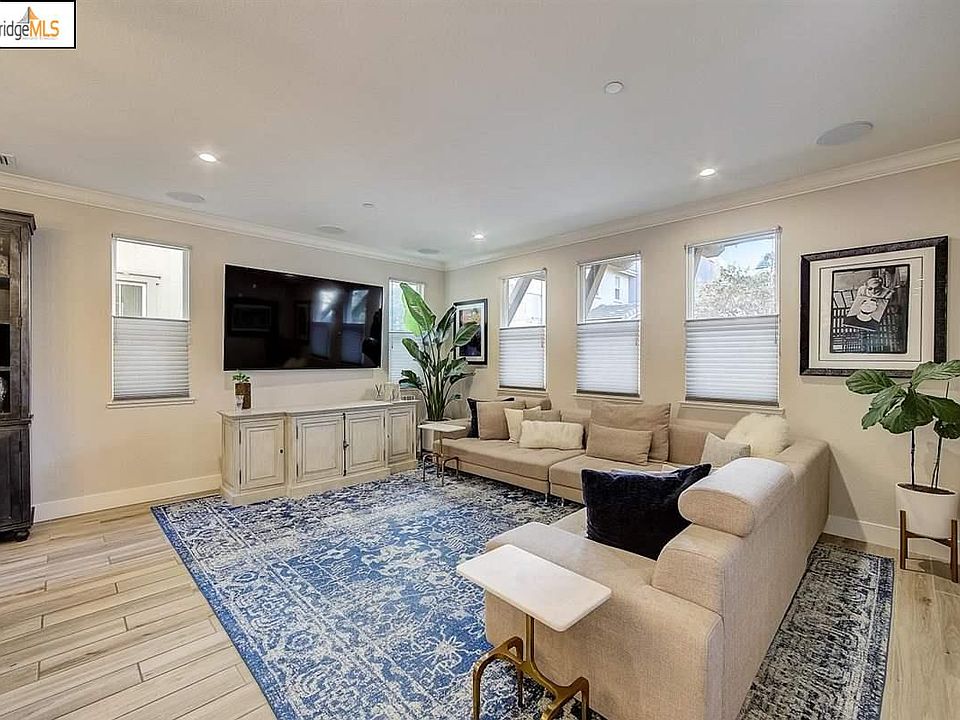 Immaculate Alameda Landing home along the estuary with over $145K in developer upgrades. 1st time on the market--built 2016. Home boasts over 2,600 sq. ft of living space featuring a "Tuxedo" gourmet kitchen with custom granite counters, subway tile backsplash, breakfast island with designer light fixtures, upgraded cabinets, professional Thermador range, hood, microwave, dishwasher & Bosch fridge! Modern great room with open living space for the living, dining and kitchen with a multi-sliding glass door for indoor/outdoor living to the manicured yard and wood looking floor tiles. Also features 3 en-suite bedrooms with full baths and custom designed closet organizers. Primary bedroom features a large soaking tub, 2 person shower & upgraded cabinets. 2 open loft spaces provide for an ideal den, library or media space. Finished garage with epoxy floors & Tesla/EV charger. All within blocks of shopping, dining, groceries and Webster tube.