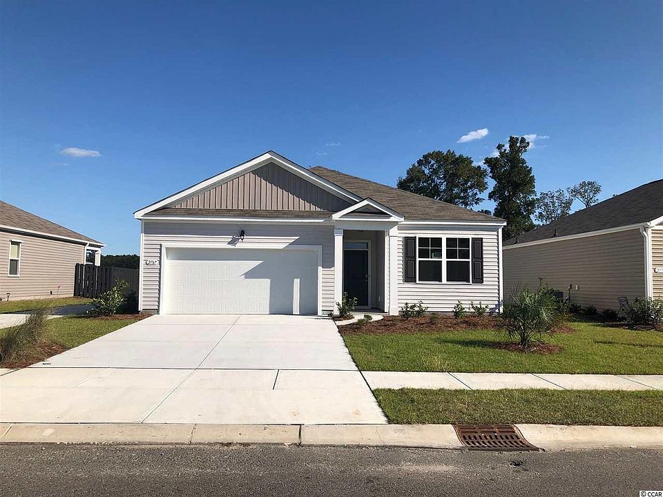 This "SMART HOME" is connected!!! Lock or unlock your doors, control the temperature of your home and see who is ringing your doorbell, from your smart phone! Kitchen features stainless appliances (including refrigerator) and 36" cabinets with pendant lights over the gourmet granite counter height island, all overlooking the spacious Living Room and Dining Room - great for entertaining! Low maintenance Solid surface flooring (resilient hardwood-look vinyl) throughout the living area, bathrooms and laundry room. From the Dining Room, sliding glass doors take you to a 12 x 8 ft. covered porch. Owner’s suite offers a large walk-in closet and bath with 5 ft. shower, double vanity and sinks. Washer, dryer and garage door opener included! Our home owners will enjoy a resort style pool, hot tub, air conditioned pickle ball court/meeting space, walking trails and a short golf cart ride to the beach. Live like you're on vacation! Photos of home are of a model home of same floor plan in another community and are for presentation only. Square footages are approximate.
