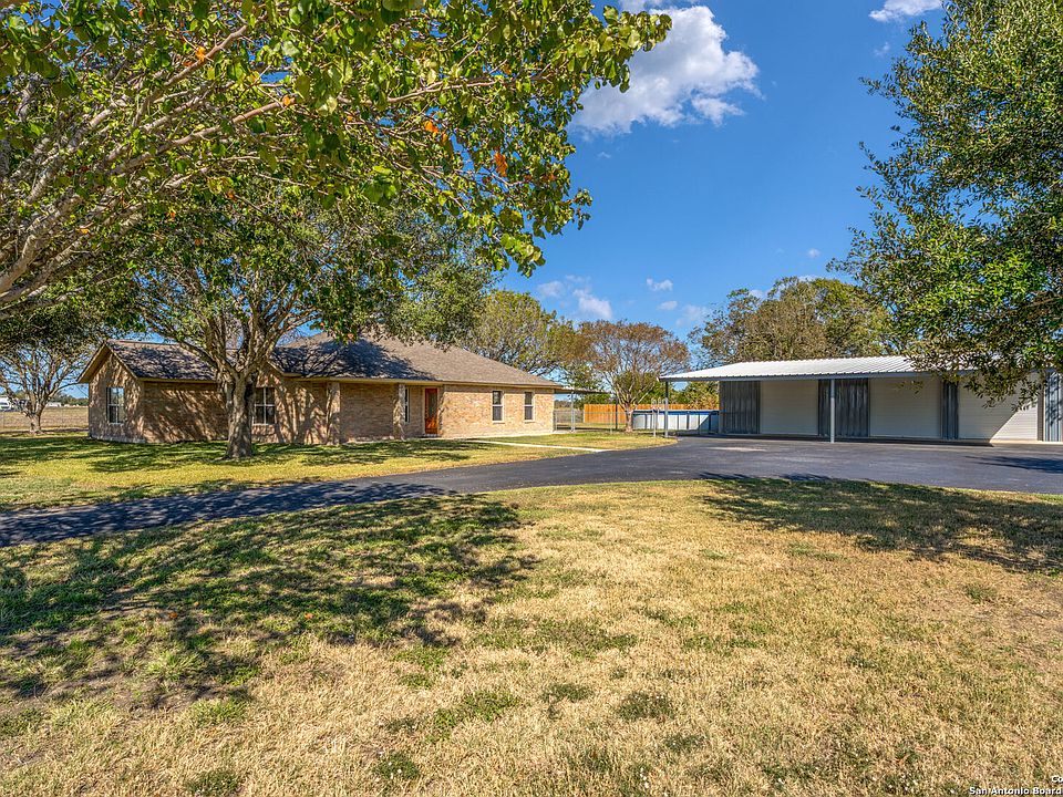 Very Motivated Sellers! Welcome to country living with city convenience! You are going to love this property! This spacious 3BR/2BA home on 1.763 acres (fully fenced with chain-link & privacy fencing) offers 1,974 SF per tax records, featuring two large living areas- one which is perfect for a media room, home office, game room, or potential 4th bedroom. Freshly painted interior with easy-care Travertine tile flooring, and beautiful wood look Luxury Vinyl in the Bedrooms and front Living Area,no carpet! The large kitchen boasts ample counter space, an island, and a stylish tile backsplash. Enjoy outdoor living on the oversized 20x18 covered back patio. The property includes and you will love this also, a massive 25x50 garage/workshop with 3 overhead doors, a 25x50 front carport, and a 12x50 rear covered area. Approximately 1250 Sq.Ft. inside! There is a partial sprinkler system around the house and two sides of the garage! Plus Radiant barrier and blown in insulation! Located in Cibolo city limits, just 2 miles from I-10 and minutes to FM 78. Don't miss this rare find with space, flexibility, and functionality!