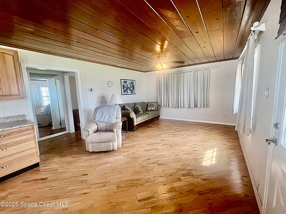 New Owner Wanted! Charming 2 Bedroom Concrete Block Home on .24 Acres in NE Palm Bay available NOW! 2Steps to the Indian River! Not in a Flood Zone / 20+ Feet above Sea Level! Zoned for Commercial and Residential! Metal Roof! Impact Windows! Handicap Accessible! All New / Updated Plumbing! Updated New Water Supply Lines! Updated PVC Sewer Lines (No Cast Iron)! All New Electrical Service, Panel and Wiring! Updated Kitchen Cabinets and Counters! Updated Bathroom! Newer AC (2022)! On Demand Water Heater (2023)! Wood Flooring over Terrazzo! Tile Flooring in Bathroom w/ Roll-In Shower! Washer / Dryer Hookups Inside! Wooden Ceiling in Kitchen / Living Room! Ceiling Fans! Paver Front Porch, Driveway, and Patio! Large 10*16 shed / Shop! Wooden Fence around Most of the Yard!