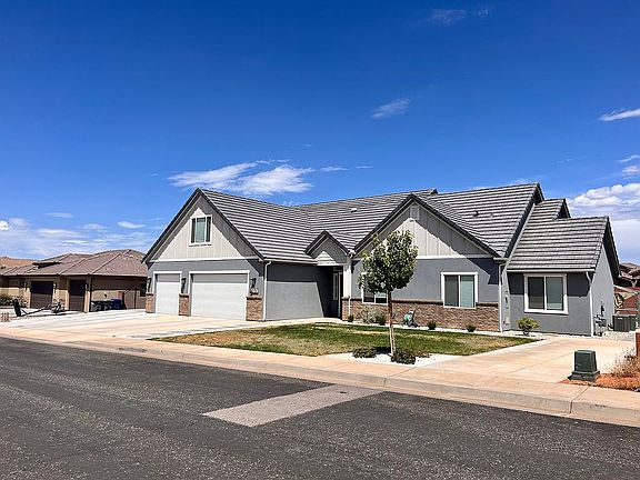 This stunning custom home with a open floor plan is located minutes from Sand Hollow & Quail Creek reservoir, sand dunes, multiple golf courses. 24 miles from Zion Park. Located on a .26 acre lot in a quiet cul de sac. This home has 5 bedrooms, 3 1/2 bathrooms, bonus room upstairs, 3 car garage, rv parking, an office that can be converted into another bedroom if wanted. Home is 3 years old. Fully landscaped with block walls around all sides of the yard. Natural gas plug for bbq. Quartz counter tops in kitchen and laundry room. Marble counter tops and showers in bathrooms. Custom cabinets, custom closets, lots of storage through out home. Tile floors in bathrooms and laundry room, laminate wood flooring through out first floor. Low profile carpet in bedrooms and upstairs.