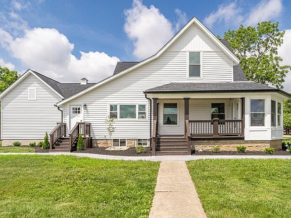 This breathtaking home has been completely overhauled w/ just about brand new everything! Situated just outside of Jeffersonville, minutes from I71, US35 & the new Honda plant. This captivating home offers 5 beds, 3 full baths, a charming sunroom, over 3,000 SF of living space, & 4 garage spaces! On the 1st level, you will find an open floorplan with a gorgeous kitchen, laundry, an original bedroom, a full bathroom, plus a large primary bedroom w/ en suite! This radiant bath contains a soaking tub, walk-in shower, large double vanity, walk-in closet, & more! At the top of the meticulously designed staircase, you'll find 3 more bedrooms & another stunning bathroom. The shared driveway is wide enough for 2 vehicles! Public water & sewer! Miami Trace Schools!