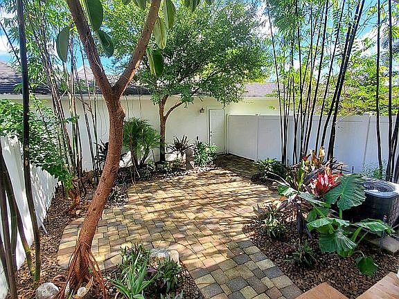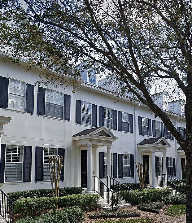 This updated Baldwin Park townhouse is located in front of Blue Jacket Park. The kitchen has quartz counter tops, a large island, and wood cabinets. Downstairs has white oak hardwood floors throughout the kitchen, dining room, breakfast area, living area, half bathroom, and large family room. The extended downstairs living space opens into a beautifully landscaped courtyard with brick pavers, bougainvillea, bamboo, and a fountain. Upstairs is the master bedroom suite, two additional bedrooms (one is converted office with built-in shelves), and second bath, laundry, utility closet. Both attic spaces (above second floor and above garage) have easy access pull-down stairs leading to huge storage rooms. This ISSA Townhome comes with lots of upgrades, enhancements and improvements such as plantation shutters. Interior professionally designed with custom furniture. Rear entry garage and very short walk to the largest park in Baldwin Park. Paved trails for walking, jogging, roller blading, and bike riding. Top rated local public schools.3 community pools (one is heated!), 2 workout rooms, and a entertainment room for residents.
