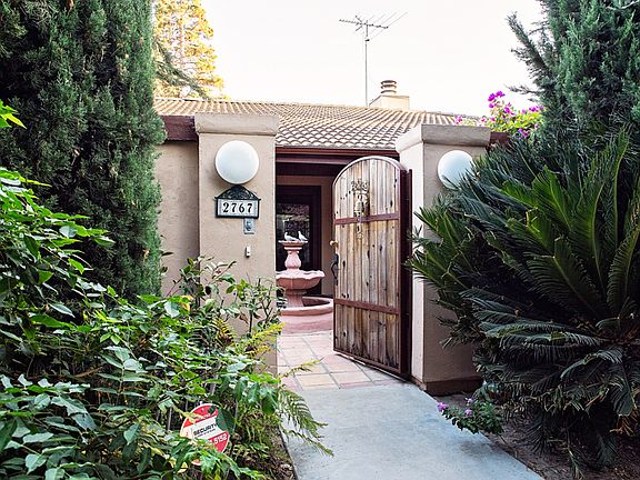 Welcome to 2767 W. Escalon, a private retreat on the Van Ness Extension. Tucked behind mature and mostly drought tolerant landscaping, you'll be welcomed into a gated and tiled courtyard and the serene sounds of a water fountain. Inside this beautiful home you'll find a well thought out floor plan including an open kitchen with butcher block counters a large island with a marble top. The large living room has knotty pine ceilings and 4 skylights for plenty of natural light. Several rooms have large dual paned windows providing views of the secluded back yard and large in ground pool. The west wing has 4 bedrooms and 3 bathrooms. All bedrooms have their own access to the outside and 3 have independent air conditioners. The master bedroom has access to the backyard, two large walk in closets and a well appointed bathroom. The exterior was recently painted. Call your Realtor today for a private showing!
