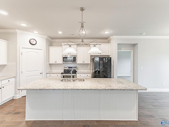Welcome Home to this beautiful and spacious home featuring an open-concept design, perfect for modern living. The kitchen is a chef's delight with stunning white cabinets, granite countertops, and an oversized island offering ample seating. The home boasts four bedrooms and three baths, including a primary suite. The primary suite features a trey ceiling, walk-in closet, and an exquisite master bath with a large double vanity, wide shower, and a soaker tub. Additional highlights include a large laundry room and a fenced-in backyard with a screened-in patio, ideal for summer fun, and outdoor entertaining. Conveniently located right off of Hwy. 72 in East Limestone