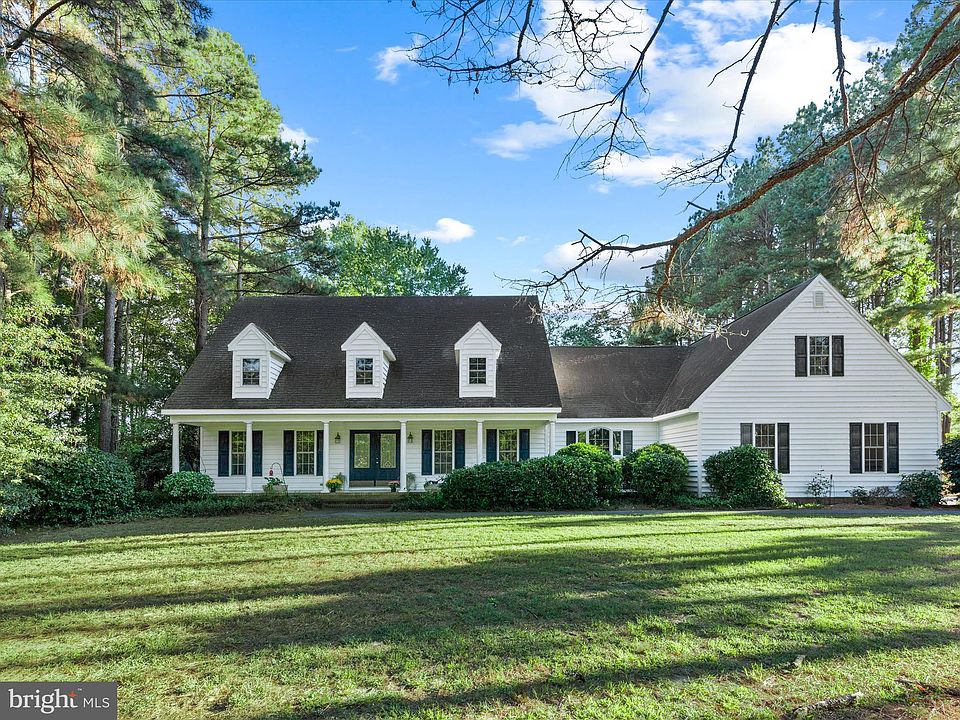 Welcome to 27671 Riverside Drive Extension in Salisbury, a charming Cape Cod retreat nestled on a private 1.24-acre lot surrounded by nature. A long driveway leads to an oversized side-entry garage, beautifully landscaped grounds, a covered front porch, and classic dormers that add timeless appeal. Step inside the two-story foyer, where a warm and inviting living room with a gas fireplace sits opposite a formal dining room ideal for hosting special occasions. The spacious eat-in kitchen features rich cherry wood cabinets with trim-topped finishes, a stylish backsplash, and a high vaulted ceiling over the dining area accentuated by a large window that frames serene backyard views. Just off the kitchen, a comfortable family room shares a double-sided fireplace with a bright and airy sunroom, a perfect spot to relax with morning coffee or evening gatherings. From here, step out to the expansive deck and paver patio, thoughtfully designed for outdoor entertaining and enjoyment of the tranquil setting. The main-level primary suite offers comfort and privacy, complete with an ensuite bath featuring a dual-sink vanity, soaking tub, and two walk-in closets. A convenient kitchenette and laundry area off the garage provide additional storage and functionality, complemented by both a full and half bath on this level. Upstairs, you’ll find three additional bedrooms and a spacious bonus room that can serve as a second family room, home office, or fitness area, offering flexibility for a variety of lifestyles. This home combines classic design with modern convenience, all within a peaceful and private setting just minutes from Salisbury’s shops, dining, and amenities.