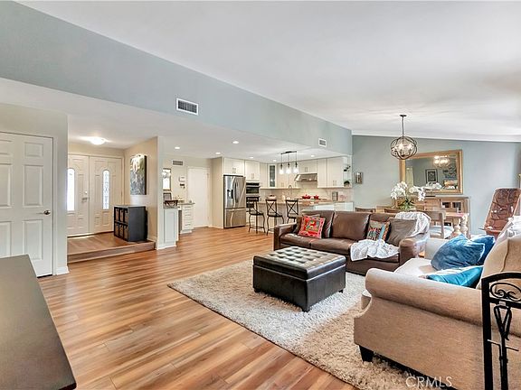 Watch the video!! This fabulous, impeccably remodeled Castille single-story home is nestled in this coveted Mission Viejo community surrounded by wonderful walking trails and community parks. Delight in the open floor plan, redesigned to provide a great room concept. Natural light floods into the rooms providing a tranquil, peaceful feeling. The gorgeous, remodeled kitchen boasts granite countertops, white, soft-close cabinet doors and drawers with slide out shelving, providing storage galore! The farmhouse stainless steel sink has an upgraded faucet. Stainless-steel Samsung SMART appliances – refrigerator, dishwasher, wall oven, gas range, & hood, complete the elegance of this fabulous kitchen. Enjoy the seating for 4 at the countertop, brightened by pendant lighting. The dining area adjoining the kitchen looks out to the beautiful backyard. Luxury vinyl plank, wood grain flooring throughout adds to the ambiance of this exceptional home. Note the spacious bedrooms & remodeled master bathroom with ceramic tile, spacious shower, new vanity, fixtures & lighting. The secondary bathroom also has a new vanity, fixtures, & lighting. Great improvements - the ‘OneWater’ whole-house water filtration system, newer garage door, ‘Ecobee’ thermostat, Orbit B-Hyve Sprinkler Controller, Blink camera system & doorbell, & ADT alarm system. There is a “man cave/she shed” 20’10’ Tuff Shed Premier Pro for that getaway space for working, exercising, or playing, while enjoying the comfort of the ductless heating & cooling system & ceiling fan! Privacy, & peace & quiet are found in this spacious backyard backing to a lush greenbelt. The Lakeview Aluma wood patio cover is maintenance free & provides a wonderful entertaining space for the lazy days of summer! So much fun awaits you…using your Lake Mission Viejo membership providing wonderful access to beach activities, concerts, water sports, and community events throughout the year! Preferred t-times and reduced fees at Oso Creek Golf Course. Located in a highly rated school district, walk to Newhart Middle School; enjoy daily exercise walking the Oso Trails, relax at the community parks, participate in events at Norman P Murray Center, and don’t miss the weekly Farmer’s Market! Wonderful proximity to shopping, restaurants, and easy access to the freeways. Race to this beautiful home!
