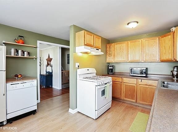 Adorable beautifully maintained 4 Bedroom Cape Cod with lake rights! Hardwood floors highlight the main level flowing from the spacious Family Room with picture window, thru the formal Dining Room and into the main level Bedrooms including the large Master! Newer kitchen & bath. 2 additional Bedrooms upstairs! The newly fenced in backyard features a brand new deck & freshly landscaped area with firepit for easy outdoor entertaining! 2 car detached garage! New sump pump & well piping, too! Don't miss this one!