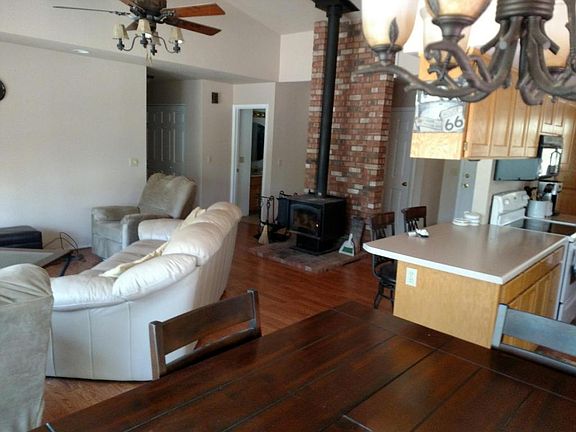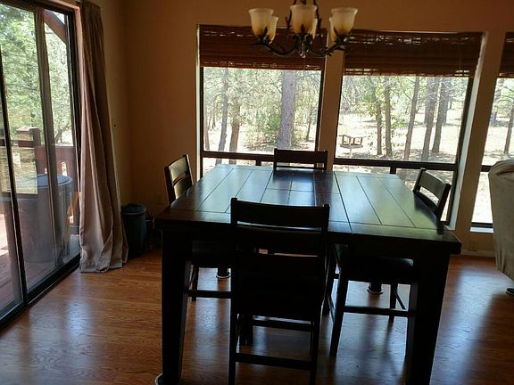 Quaint cabin on the mountains on a heavily treed property, very private, with huge open deck and separate grill area under the Ponderosa Pines! 3 bedroom, 2 bath with open floor plan. Tons of windows, wood stove, large kitchen with island, double pantry, and including dishwasher. Laundry area and lots of closets!Needs some TLC, AS IS!