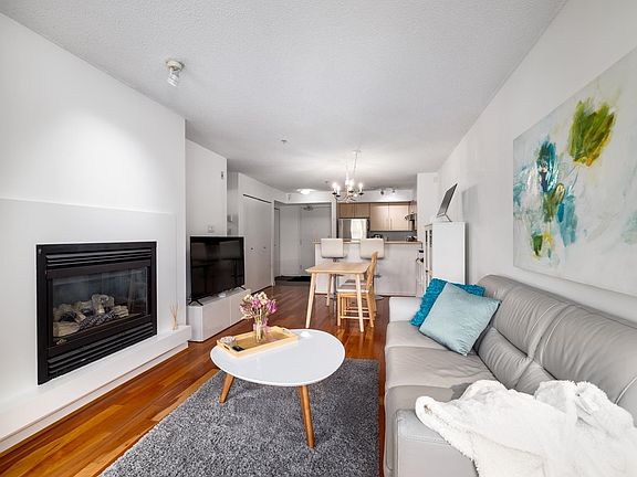 Bright and spacious 1bed+den+flex unit in the highly sought after Zydeco in Arbutus Walk! At 700sqft, this oversized 1 bedroom unit offers a great functional layout with no wasted space. This open floor plan boasts a large living/dining area with rich hardwood floors paired with a cozy gas fireplace and a bright den that's perfect for the home office. Very well-run and proactive strata in a perfect location with numerous shops and restaurants right outside, steps to the Arbutus Greenway and the future Arbutus Skytrain station. Pet friendly and parking included!