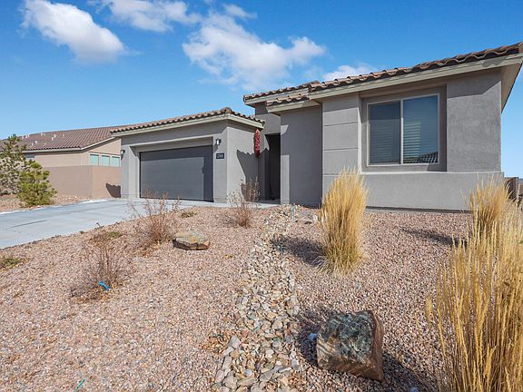 Nestled in the scenic Mariposa neighborhood on 2,200 acres of recreational space, this dream home invites you to indulge in unmatched luxury. Perfect for entertaining, the residence features an open floor plan, gourmet kitchen, and spacious living area. Enjoy top-tier amenities at the community center just a 5-minute walk away, including an indoor/outdoor pool and fully equipped fitness center. Families will appreciate the highly rated Rio Rancho Public Schools, as well as the safety and tranquility of this quiet, gated neighborhood. Your private outdoor oasis awaits with garden beds, a fire pit, a hot tub with deck, and a sprawling turf area, all complemented by stunning views of the Sandias. Fully upgraded both indoors and out