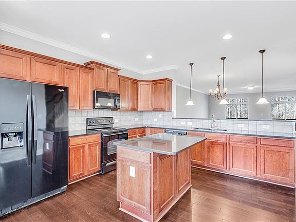 Immaculate END UNIT! Fresh gray paint through-out interior, NEW gray carpet and NEW wide plank hand scraped hardwood flooring on main level! Granite island kitchen views the dining room and great room w/fireplace and access to the large deck overlooking the private wooded backyard. Three bedrooms on the top floor include the master suite with tray ceiling, walk-in closet and tile bath with separate garden tub and tile shower. Finished terrace level with rec room and full bath could easily be converted to 4th bedroom. Spacious garagae with storage area.