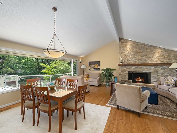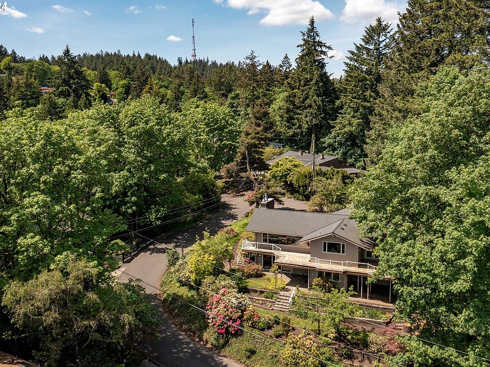 Sanctuary in the City! Perfectly positioned at the end of a quiet street, this West Hills residence offers a serene retreat with gorgeous views of Mt. Hood that are enjoyed from nearly every room on the main level! Designed to create a functional and comfortable lifestyle, this property is ideal for entertaining and relaxing with its open yet defined living areas. The inviting dining and living rooms feature vaulted ceilings, gleaming hardwood floors, a wood burning fireplace adorned with a stone hearth, and 21 feet of windows that perfectly frame the picturesque mountain view. The gourmet kitchen boasts stainless steel appliances, both granite and quartz countertops, and an eating island that seamlessly flows to the adjacent family room for more casual gatherings. The family room features a gas fireplace with stone surround and easy access to the deck. The primary bedroom rounds out the main level and is complete with an en-suite spa-like bathroom and walk-in closet plus beautiful custom cabinetry and a planning desk are located just outside in the hallway. On the lower level you will find three additional bedrooms (one of which could function as private home office with a separate entrance) and a spacious second family room complete with a stunning stone surround gas fireplace and custom built-ins that opens to a covered patio. Enjoy the expansive wraparound cedar deck on warm summer evenings or take in beautiful sunrises, and savor the beauty of the surrounding landscaped yard and vegetable garden. Conveniently located near the walking trails (less than two blocks to the Marquam trails), parks, OHSU, and downtown Portland this home is also situated in a top-rated school district. This truly is a special property in a prime West Hills location! [Home Energy Score = 5. HES Report at https://rpt.greenbuildingregistry.com/hes/OR10228495]