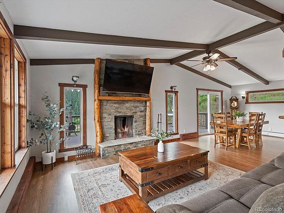This home is a must-see if you are looking for the perfect mountain retreat. The opportunities are endless, offering 2 parcels in one! The home sits on the front lot, and the back lot is ready to be built on with a foundation dig already started and another perfect flat spot for a large shop/garage or barn! This is zoned for horses. The back lot also has a separate entrance and the county will allow a secondary dwelling! Before stepping into the home you are met with an expansive wrap-around porch offering 360 mountain views to watch each season pass. Entering the home you are welcomed by the beautiful craftsmanship all throughout the house, with custom wood trim, hardwood floors, and large windows bringing the outdoors in. The upper-level offers, rustic beauty showcased in the kitchen fit for entertaining with granite countertops and open seating in the living and dining areas. Moving down the hall you have the first bedroom and bathroom of the home. Enjoy the bonus area that is set up for a home office. Headed downstairs is the additional 2 bedrooms with a full bathroom and an additional living area to retreat and relax in front of the fireplace. Don't miss the opportunity to call this beautiful mountain home yours!