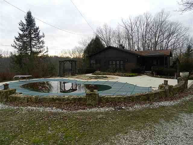 This beautiful ranch that sits on 50+/- acres features in-ground pool, 1 yr. old pool equipment, newer water system, 2 cellers/storage sheds, 2 ponds, barn, 2 car detached garage, security system, hardwood floors & lots of storage. Perfect place for hunting and for horses or cattle. On Grayson/Greenup County line. A Must See! Sq. ft. is approx.