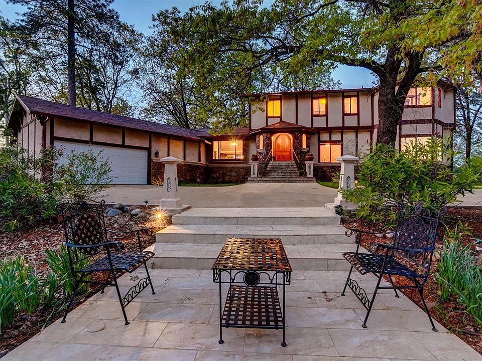 Custom CRAFTED European Inspired Estate on a Private 5 ac park setting. Brick gated Entry. Level meadows, room for a barn/horses, pool or shop. Magnificent Victorian bronze fountain in center of wading pool. Gazebo patio w/ gas fire pit/table & Craft shed. Lawns/flower beds w/computerized sprinkler system. Enter the Solid mahogany Tudor style door & marble floor w/ handcrafted & carved 2-story banister. Mahogany throughout is custom crafted: The cabinetry, 18 five-panel doors & wainscoting unique and one of a kind! New mahogany flooring. Newly Updated baths & kitchen. Large sunny parlor overlooks fountain area. Huge beamed great room w/ English-style paneling highlighted by a real stone fireplace; large wet bar. Attached spa room & spa bath w/ shower. 1000-sf. of wrap-around composite decking. Entertainer's kitchen, new stove top, oven & microwave. Large attached Guest quarters. Close to Lake, Golf Courses & Award winning Schools. Lake of the Pines membership available. Only $198.00 per sf in a Prime Location and an Incredible Value. Check the Comps!