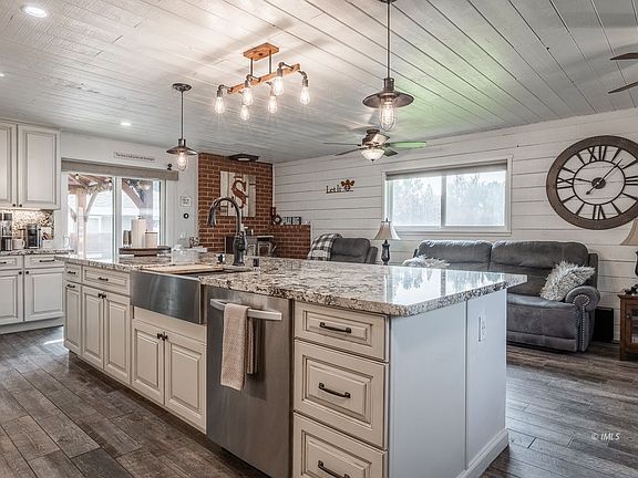 This lovely "smart-solar powered home" includes two-bedrooms, one bath, two-car garage and plenty of parking. Your solar system is paid for and will help keep those utility bills low, while keeping you warm and toasty. The beautiful, updated kitchen, with hard surface counters, large island, and lots of cabinets make it easy to prepare all those great meals. Even the bathroom has a solid countertop with a great shower and if you're looking for a laundry room with plenty of storage for all your supplies, then this will meet your needs. Large yard with its tranquil stream is a great place for all those BBQ'S. Close to skiing, fishing, hunting, rock climbing and cross-country skiing.