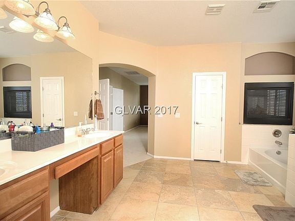 Gorgeous Anthem Highlands home, mountain and strip views from Master balcony. Oversized designer ceramic tile flooring with luxurious carpet in bedrooms and formal living room. Kitchen with granite island & walk in pantry. Covered patio with sports court backyard. Large master with huge walk -in closet. 2 way fireplace from master bed into bath. Vaulted ceilings in great room, family room off kitchen with fireplace. Many more features-must see