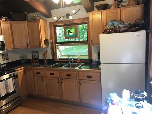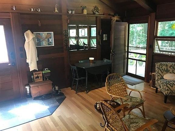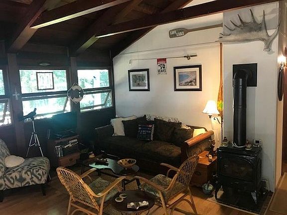 This 2 bedroom, 1 bath cottage is located on picturesque Dinner Lake and sits on 1.7 acres of land. It has been completely remodeled with a modern kitchen and bathroom. The interior lends to northwoods decor with it's redwood cathedral ceiling and redwood walls. It has a wrap around lakeside deck overlooking 200 feet of western exposure lake frontage. A 400 detached sq foot garage will store your car and added toys.