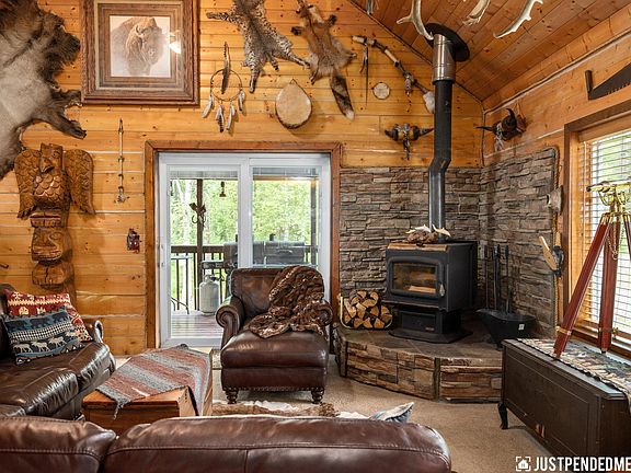 This amazing home on 9.59 acres with circular drive, wrap around covered deck, green house, raised beds for growing fresh veggies, wonderful views, and the best part is the home, it has a rustic alaskan feel, with many artistic touches. Also nice cabin for possible rental income or mother in law. This home could be yours.