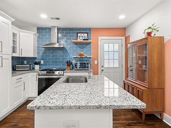 Modern updatesExposed brick wallLarge flat yardDesigner finishesNew deckOversized islandStainless steel appliances
