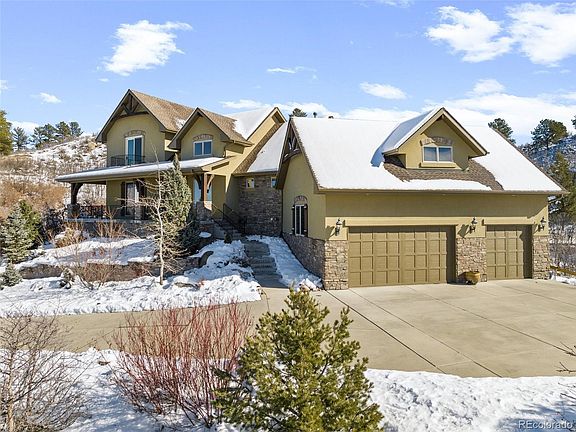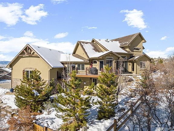 Welcome home to luxury Colorado living in the highly desirable Escavera community where low-maintenance living meets your lifestyle. This custom built home is perfectly situated high on the hill boasting breathtaking panoramic mountain views. Located at the back of a cul-de-sac, and backing to open space creates opportunity for privacy while also enjoying access to parks, playgrounds, recreational facilities, and an abundance of walking trails. The architecture of this home includes high ceilings, hand troweled walls, and an inviting open space with expansive windows that bring the Colorado charm indoors. Fresh carpet throughout and new paint breathe new life into every room, creating a sense of warmth and comfort. A thoughtfully designed main level includes multiple multi-purpose rooms with endless possibilities that could include living, dining, an office, or additional bed and bath. The gourmet eat-in kitchen features an induction cooktop, double oven, large pantry, and high end finishes sure to impress. Tucked off the kitchen is the generously sized mudroom with access to the enormous 3 car-garage, laundry room and guest half bath. The Primary suite boasts a private deck and stunning primary bath with large walk-in closets complete with custom closet systems. An upper level open to the main hosts an additional bedroom, full bath, and open area with incredible mountain views. Whether you're entertaining guests or enjoying a quiet night in, the lower level offers the perfect balance of space, fun, and relaxation. An additional full bedroom and bath and plentiful storage complete the lower level. A hard wired backup generator is one example of the many ways this home has been cared for and carefully designed. Step outside to a concrete and stone patio where you'll enjoy the beauty and privacy that surrounds. We welcome you home to this stunning Colorado retreat!