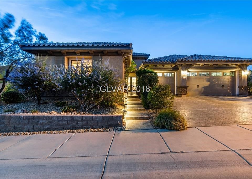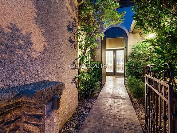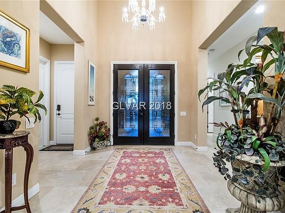Beautiful home is elegant yet comfortable offering fine finishes such as porcelain tile, cherrywood floors, decor paint, plantation shutters, custom built-ins, and stylish fixtures. Open concept kitchen highlighted by granite counter, custom island, and high-end appliances including a new Sub-Zero refrigerator. Outdoor living space features a covered patio with ceiling fan and speakers. Premium lot offers privacy along with Las Vegas Strip views.