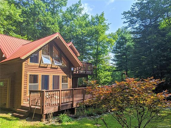 Well-designed 3 bedroom home with lake rights for peaceful recreation. The great room has gleaming redwood floors and South-facing double-height windows and is open to the kitchen with custom cabinets, propane range, and windowed dining nook. Upstairs, vaulted bedrooms, one with a walk-in closet and private deck, and a bathroom with jetted tub. Serviced by cable internet and pre-wired for ethernet so Zoom and stream to your heart's desire. In the heady days of Summer and Fall, head around the corner to the access to beautiful Black Lake, then retreat to the deck surrounded by perennial plantings. When Winter rolls around you will love the radiant heated floors and propane stove along with spray foam insulation, low-E windows, and mechanical ventilation. Cedar siding and metal roof for classic style and a long life. A few minutes to White Lake, Bethel Woods, Rt17. Welcome to your Catskills home!