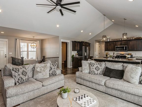 Simply stunning is the only way to describe this home. From the front door you will be charmed with the open floorplan and vaulted great room with oversized wall of windows and a gorgeous stone fireplace. Open sightlines to the chef’s dream kitchen loaded with amenities such as beautiful custom cabinetry, solid surface countertops along with a large Island, tile back splash and large walk-in pantry. The formal dining area surrounded by more windows and access to the spacious deck perfect for entertaining. This split bedroom floor plan is so popular as it gives tremendous privacy from the spacious primary suite which is loaded with very tasteful upgrades including dual vanity sinks, full designer tile shower and wonderful walk-in closet that connects to the main floor laundry and drop zone area coming in from the garage. The two other bedrooms on the main floor are tucked away on the other side of the great room with an additional full bath to share. The finished walk out lower level is just as impressive as the main floor with designer touches, family room, full wet bar, third full bath, forth bedroom along with a spacious finished room currently being used as a home gym or office. There is a wonderful patio area you can access which includes a hot tub that stays with this home. Beautiful landscaping oversized three car garage and better than new condition. Call for a private showing today you won’t be disappointed.