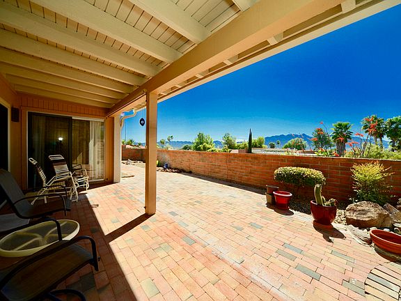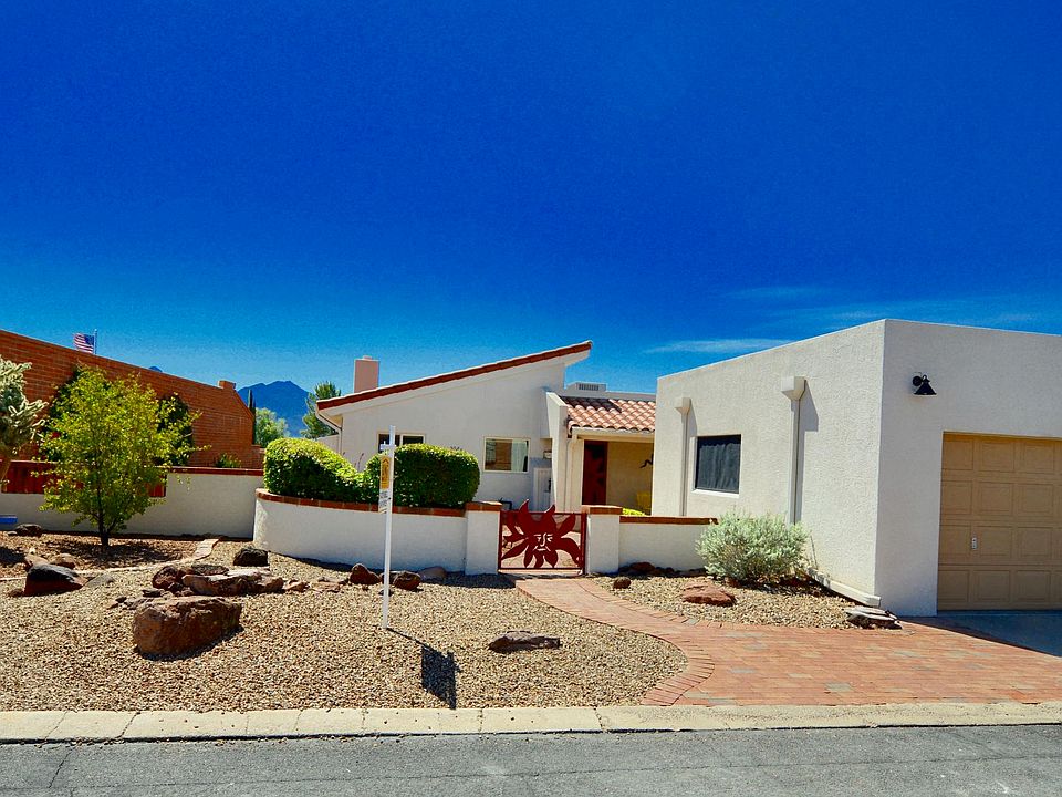 * VIEW VIDEO: https://az.movinghometour.com/22010155_Tucson%20MLS * Beautiful updates and a great view from almost every window. Tiled entry way and engineered hardwood in the living areas and master bedroom make this home a breeze to care for. New windows and sliding glass doors plus a brand new roof make this home a no brainer!Gas beehive fireplace in the living room with a great view pf the Santa Ritas. Den has built in cabinets with a desk and again a great view.The kitchen has pull outs cabinets, granite counters and new fridge. Staggered cabinets and over heard spot lighting offer an elegant touch. The laundry is tucked neatly in the closet with plenty of room to fold on the island. Several private sitting areas with birds, flowers make this house perfect for an easy going peaceful life style.