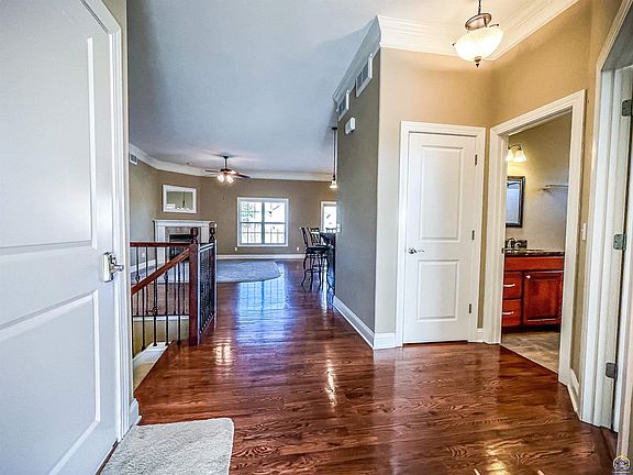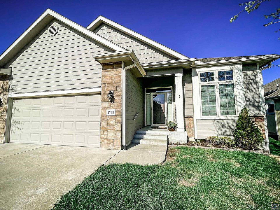 Beautiful well loved craftsman style home with open floor plan, hardwood floors, cherrywood kitchen with granite counter tops! Very rich finishes in this maintenance provided style living in SW Topeka. Crown moldings and tiled baths, walk in closets in the primary with large bathroom and vanity. Finished basement with daylight windows and a lovely covered patio to relax or entertain! HOA lets you enjoy the pool, clubhouse and pond! Schedule your showing today. This one won't last long!