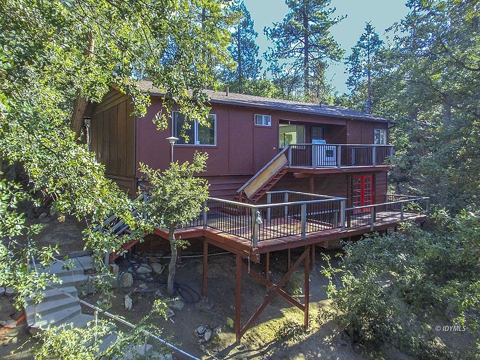 27690 Saunders Meadow Rd., Idyllwild, CA 92549: Located on a county maintained snow plowed road with beautiful tree lined views, just a short 5 minute drive to downtown shopping and dining, hiking and parks. There are 3 bedrooms, 2.75 baths, including a rock fireplace with a woodstove insert, Heating & Air, approximately 1600 sq.ft., with multiple deck areas. Built in 1976, there are lots of options here. Downstairs offers a bonus living area with separate access to its own deck, an additional bedroom, office with large walk-in closet, wet bar, and full bathroom. Low Taxes and no HOA. Septic clearance has been completed. Beautiful setting on .25 of an acre, across the street from Saunders Meadow & The Idyllwild Astro Camp.