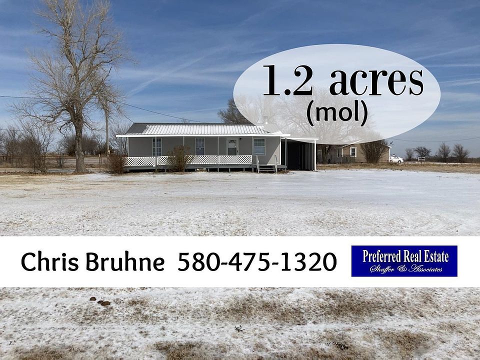 Experience the sunsets, open-field views and fresh air of the beautiful Oklahoma Plains in this clean-little home. This home is four miles west of Hwy. 81 and one mile south of The Territory Golf Course. This home has new flooring, floor heaters, a new metal roof, a new metal roofline facer, new Hardie board exterior siding, and new paint.