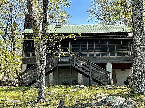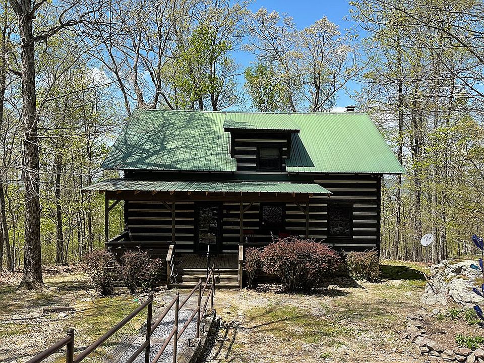 Log cabin on the West Brow with 8 acres in Mentone. 3 bdrm, 2 bath, living with rock fp. Screened porch. Great west brow views sunsets!