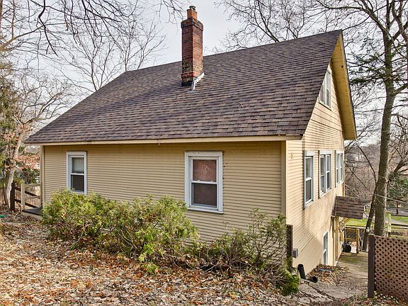 Immediate possession is offered by long time owner who has relocated after many years of enjoyment in this unique Hillside home surrounded by towering trees! Beautifully updated kitchen with Maple cabinetry and granite counters, stainless appliances and planning desk! Vinyl windows, New roof, newer furnace, floors and carpet. Three bedrooms and two full baths including whirlpool tub! Spacious family room and convenient laundry! Ideal first floor office off kitchen has "secret room" behind bookcase! Two deck areas offer gorgeous views of surrounding landscape. Rear shed on back of property has additional compact car parking space. Lower parking area shed as is. Great value but sold as is and no FHA/VA please. Out of state seller has priced for quick sale.