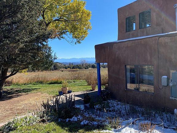 An updated adobe home with character and charm. There is a kiva fireplace in the Primary bedroom, a fireplace insert in the living room, a completely updated kitchen with a sunny dining area, an entry half bath in the laundry area, tile floors and viga ceilings create a cozy feel. There is a large screened in porch off the living room, perfect for summer sleeping. Also climb the fold down stairs and enter the yoga/reading room upstairs with views of the mountains and the valley below. There is a 2 car garage with a separate workshop/studio with a woodstove and a half bath. There is a garden area just off the ditch, a large water catchment tank for irrigating the yard. The ditch runs through the property but there are no water rights. Step over the bridge and see the entry gate to the Carson National Forest for hiking and mountain biking! This property is about 2 miles from the entrance road to the forest, perfect for repelling, camping, hiking and hunting!! Enjoy the outstanding views of the Sangre de Cristo Mountain range from your back yard while relishing the trickle sound of the acequia. Come enjoy the village of EL Rito!