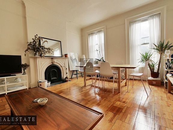 CLINTON HILL 2nd floor, 1 flight walk up 2 Large bedrooms FIREPLACE LIVING ROOM LARGE KITCHEN Bed #1: Can fit a King sized bed with two side tables, a dresser, and plenty of space for a desk or other furniture. Beautiful Deco-Fireplace in the room. 2 large windows flood the over sized room with light. Bedroom located in the back right of the apartment Bed #2: 2nd bedroom can fit a King sized bed in the corner and walk around room on two sides OR a queen sized bed in corner with walk around room on two sides OR a full sized bed centered with two side tables. Kitchen: is an open work in kitchen with large counter top and cabinetry and classic appliances. The stove is a four burner gas range . The kitchen is located in the front right of the apartment. Living room: large space can fit an L shaped sofa with a coffee table and rug or a 3 seater couch with two side tables and a coffee table with rug. It can also include an entertainment system such as sound systems, a tv and tv stand. The living room has three windows with southwestern lighting. Heat and Hot Water is Included NO DOGS, CATS ARE OK close to a bars, cafes, restaurants, shopping and transportation, 5-10 minute walk to Fort Greene park