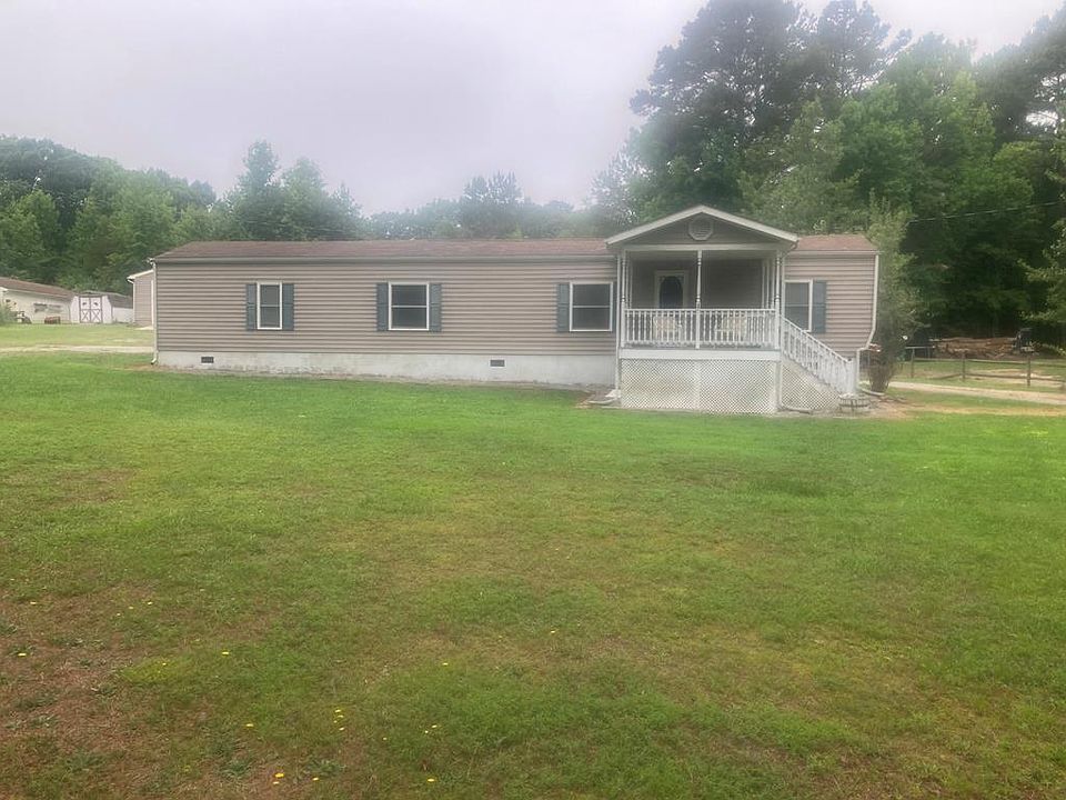 Nice Single Wide with huge detached garage, 2 Br's, 2 full baths, large living room opens to eat in kitchen, Master bedroom on one end of trailer with full bath, 2nd large bedroom at other end with shower/toilet/sink, small utility room off kitchen, front porch and rear screened porch, huge 24 x 50 detached garage with insulation and it's own CA/HP system, circular driveway, .85 acre lot, brand new roof being installed, permanent foundation