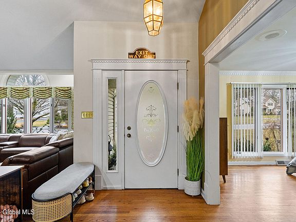Welcome home to this custom-built Rotterdam gem with a spacious floor plan perfect for daily living, entertaining, and even working from home! You will love the soaring 12 ft ceilings, chef's kitchen with sleek granite countertops, gas range, & newer appliances, two separate office spaces, & a surround sound system throughout the first floor and primary bedroom powered by Sonos. The four-season room features an indoor gas grill, a cozy three-sided fireplace, built-in train tracks for added charm, a basketball hoop, and a wet bar with a Kegerator. Walk outside to your backyard oasis with an in-ground pool and cabana with a half bath. Designed to maximize space, natural light, storage, and charm this home promises endless comfort and excitement for all!