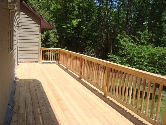 Down a long gravel drive that is off a quiet county road near the Ashokan reservior sits this almost new contemporary home. Beautiful maple floors are throughout most of the house. The cedar decking, kitchen, master bath and most of the flooring are new. There is a large Master bedroom suite with balcony,bathroom, dressing room, mini office and laundry room. Lots of value at a reasonable price! This perfect weekend/vacation getaway includes garaged parking for three cars, stream frontage and lots of privacy. The 4.6 acre lot backs onto forever wild conservation lands and is very close to the Ashokan Center.