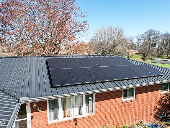 Come check out this great brick home with a newer roof, gutters and hvac, also featuring solar! Three bedrooms on the main level, one in the lower finished basement with its own closet and full bathroom, that was used as a primary suite. Also in the basement area is another huge room for an office, bonus space, playroom, or make it another bedroom. Basement access from inside or outside. Super cute yard, well maintained! Great little storage building out back, perfect for a business or office, insulated with power, 12ftx20 ft with a covered patio area.