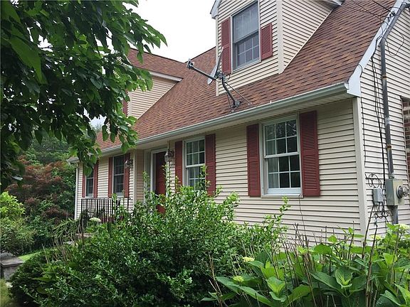 This beautiful Cape offers a great floor plan with all good sized rooms. 8 rooms, 3 bedrooms, 2.5 baths. Master bedroom has a private bath and walk in closet. The formal living room has a cozy brick fireplace open to the family room with hardwood floors, formal dining room (currently used as a play room), eat in kitchen leads to the huge deck overlooking the nice level yard with a shed, playscape and a fire pit, finished walk out basement , central air, garage. House is privately set back from the road.