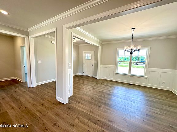Experience the perfect blend of comfort and elegance in this stunning new home just outside the city limits, boasting extensive upgrades and luxurious features with ADDITIOINAL 828+/- unfinished sf. Relax on the expansive front porch. Enjoy the elegant waterproof laminate flooring in most of the main living areas, with cozy carpeting in the bedrooms. The grand entryway leads to a formal dining room with elegant trim and molding, and an open concept family room and kitchen ideal for entertaining. The family room features a shiplap-accented fireplace, oversized island bar, granite countertops, tile backsplash, and ample cabinet space, along with a huge walk-in pantry equipped with wood shelving. The primary suite on the main level includes a tray ceiling, large walk-in closet with wood shelving, and a luxurious bath with separate sinks/shiplap accents, a tiled shower with built-in niche and tile flooring. A custom bench is situated just outside the spacious walk-in laundry room, which features built-in shelving and a granite countertop cabinet. Two additional bedrooms on the main floor share a bathroom with dual sinks, a tub-shower combo, and tile flooring. Upstairs, a finished bonus room with a half bath and elegant tile flooring awaits, along with an enormous unfinished space for storage or future expansion(ADDITIOINAL 828+/- unfinished sf). Outdoor living is enhanced by a large screened-in porch and an additional covered patio, with steps leading down to the expansive backyard. The oversized two-car garage includes a pedestrian door for easy access. Enjoy the benefits of living outside the city limits with no city taxes. This home offers a rare combination of luxury, comfort, and practicality, making it an ideal choice for those seeking a high-quality living experience. Make this your Home Sweet Home