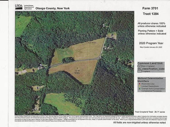 Ready to move out of the City ?? Want some space between you and your neighbors look no further! Come fulfill your dreams atop Collar's Road in Milford NY. Build a home, Barn, farm, garden, start life a new!Beautiful, Pristine, 38+- Acres of farm land. Parcel is divide by a paved road. One side backs up partially to State Land, has electric by road side with 2058 of paved road frontage and a grove of of trees along the rear border.The other side of the road has 1379 ft of road frontage on Collars Road and 688 ft of road frontage on Joe Cornell Rd mostly flat land with lush hedgerow along its rear border. This side also has a well and electric hook up ( there are remains near Well of Old farmhouse stone foundation).7 miles from Oneonta Airport, 15 Miles to Cooperstown, 10 Miles to Oneonta.