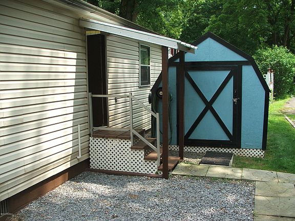 COME SIT ON THE LARGE FRONT DECK at this extremely well cared for mobile home , on a beautiful Lot. Home has an addition to it for a lot more living space. Offering master bed and bath plus 2 more bedrooms. Sunken living room with fireplace, 3 sheds with electric plus many upgrades: roof/gas furnace/hot wtr htr/water softener/pex plumbing/new toilets/heating duct work and ultra violet light all in 2008. Only $49,900. Call Karyn Eiswerth-Knerr 570-337-4375.