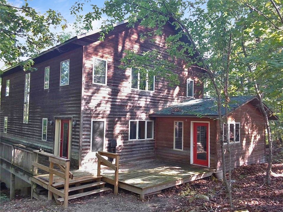 Over 11 wooded acres, this 2-bedroom, 2-bath cabin offers the perfect balance of privacy and rustic charm. Step inside to an inviting open-concept floor plan that fills the home with natural light and warmth. A full unfinished basement provides endless potential for additional living space, storage, or a workshop. Relax and enjoy the peaceful surroundings from the expansive wrap-around deck, ideal for entertaining or simply soaking in the beauty of nature. A convenient circle drive completes this rural retreat, making access easy year-round. Whether you’re seeking a weekend getaway or a full-time residence, this property is a true woodland escape.