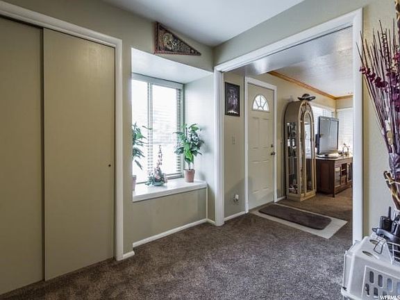 Pride of home ownership is reflected in this immaculately cared for rambler that has a fully finished basement. Some new upgrades include, new roof, newer windows, newer paint and carpet upstairs and much more... Neutral decor throughout, the kitchen has oak cabinetry style bar and a semi formal dining room with plenty of room to sit down to family dinner, master bedroom has a private 1/2 bath , 3rd bedroom on main level has a wall removed and opens up to the front room but easily could be pit back, basement is fully finished and spaciously laid out it includes a large family room down with a dry bar and a wood stove. Large 4th bedroom down and a separate sewing, craft room with blt in cabinets. Oversized extended and attached DRIVE THRU garage with room for your work bench plus an RV pad, enjoy your 13x15 covered patio in a quiet lush semi private park like setting with fruit trees fully fenced back yard and a garden spot. Sale includes the custom blt. Shed in the back yard.